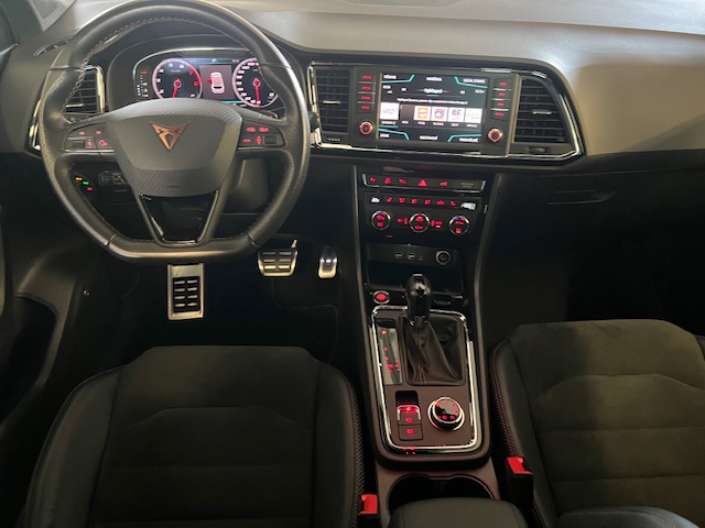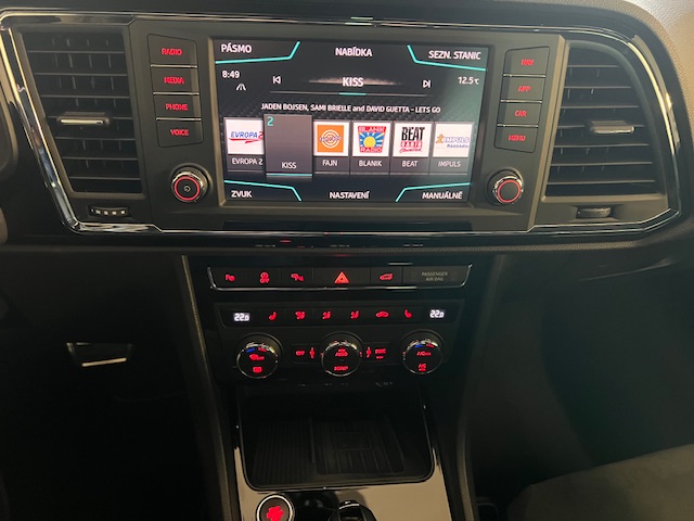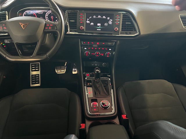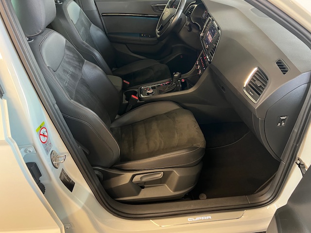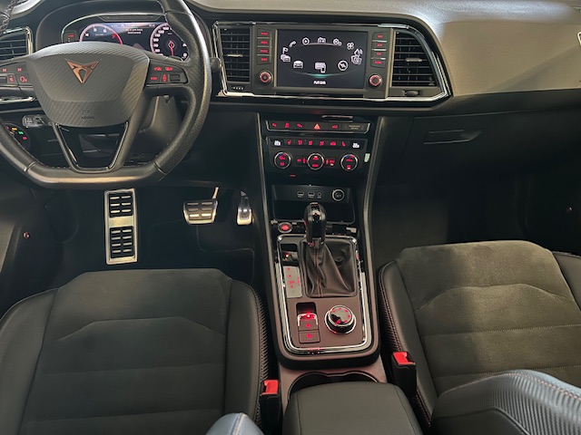 Cupra Ateca 2.0TSI 4Drive DSG 221kw, provoz 01/2019, najeto 111.870km, servisní knížka, KESSY, FULL LED, KAMERY 360°, TAŽNÉ, DCC, ACC adaptivní tempomat, el.víko kufru, odkládací přihrádka pod palubní deskou, odkládací kapsy na opěradlech předních sedadel, deaktivace airbagu spolujezdce, airbagy řidiče a spolujezdce, ambientní osvětlení LED, protiblokovací systém brzd (ABS), kontrola trakce (ASR), pohon všech kol, audionavigační systém Plus, elektricky nastavitelná, vyhřívaná a sklopná vnější zpětná zrcátka s LED směrovkami, streamování zvuku přes Bluetooth, palubní počítač, přihrádka na brýle, černé stropní čalounění, střešní nosiče, dvojitý výfukový systém, osvětlené hliníkové prahové lišty vpředu, elektronická uzávěrka diferenciálu (XDS), elektronická kontrola stability (ESC). Elektronická kontrola stability (ESC), Adaptivní regulace podvozku (DCC), asistent rozjezdu do kopce, volba jízdního profilu (SEAT Drive Profile), detekce únavy řidiče, parkovací asistent s předními a zadními parkovacími senzory včetně couvací kamery, Front Assist s nouzovým brzděním ve městě, Elektrické ovládání oken vpředu a vzadu, černé lišty oken, Full Link (MirrorLink, Apple CarPlay a Android Auto), LED osvětlení prostoru pro nohy, 7stupňová převodovka (DSG), Přední držáky na nápoje, Přihrádka v palubní desce s LED osvětlením, LED zadní světla, Zadní spoiler v barvě karoserie (střešní spoiler), Indukční nabíjecí podložka pro chytrý telefon, LED osvětlení interiéru, Úchyty pro dětské sedačky Isofix na zadních sedadlech, 360° kamerový systém, Dvouzónová klimatizace Climatronic, Kolenní airbag na straně řidiče, Digitální přístrojový panel (virtuální kokpit), Systém hlavových airbagů, nastavitelná bederní opěrka sedadla řidiče a spolujezdce, multifunkční sportovní kožený volant, volant s pádly řazení, zadní LED čtecí světla, přední LED čtecí světla, středová loketní opěrka vzadu, středová konzola vpředu s loketní opěrkou, držáky nápojů, odkládací přihrádka, elektrická parkovací brzda, hliníkové pedály, lakované kryty podběhů předních a zadních kol, systém sledování tlaku v pneumatikách, dělené/sklápěcí opěradlo zadních sedadel, sklopná opěradla zadních sedadel s dálkovým odemykáním v zavazadlovém prostoru, ukazatel polohy řazení, FULL LED světlomety, bezklíčový vstup a startování KESSY, tónovaná zadní boční okna a zadní okno, elektromechanický posilovač řízení, výškově nastavitelné sedadlo řidiče, výškově nastavitelné sedadlo spolujezdce, čalounění kůže/Alcantara, sportovně komfortní přední sedadla, systém start/stop, odkládací přihrádka pod sedadlem řidiče, 12V zásuvka vpředu, zadní nárazník v designu Cupra s difuzorem, přední nárazník v designu Cupra, LED světla pro denní svícení, odkládací přihrádky v předních dveřích, úchyty v zavazadlovém prostoru, elektronický imobilizér, tepelně izolační skla, centrální zamykání s dálkovým ovládáním
